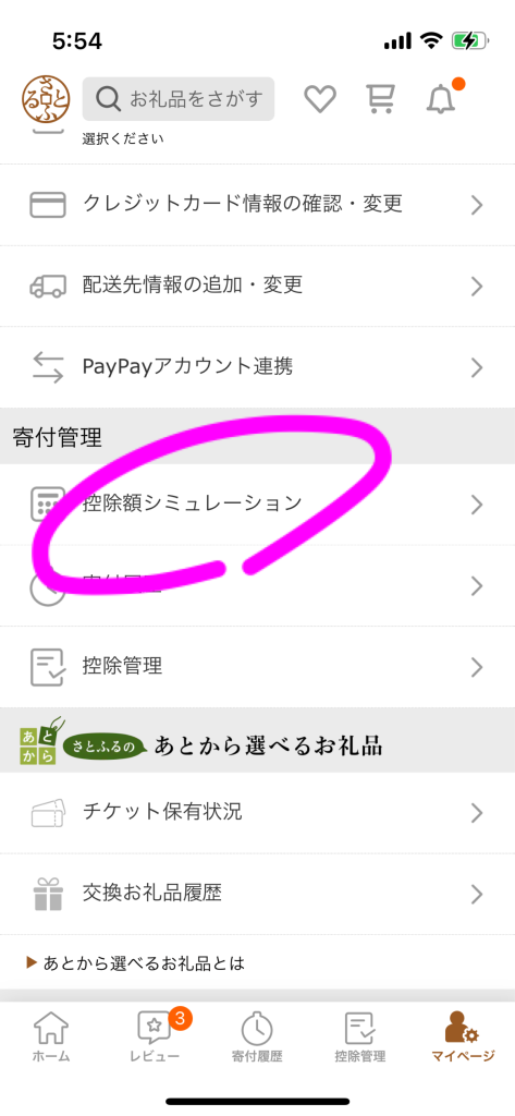 画面下の「マイページ」から「控除額シミュレーション」