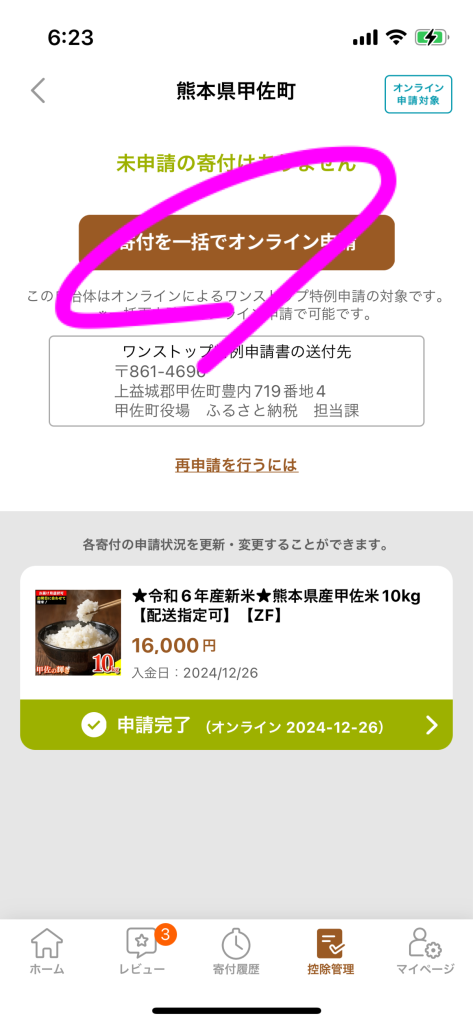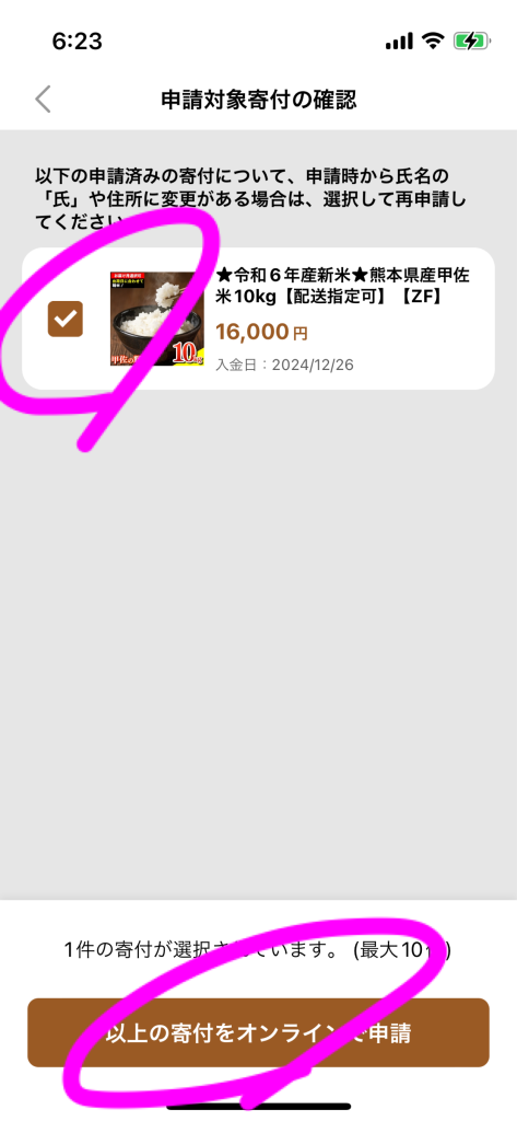 「さとふるアプリdeワンストップ申請対象」という