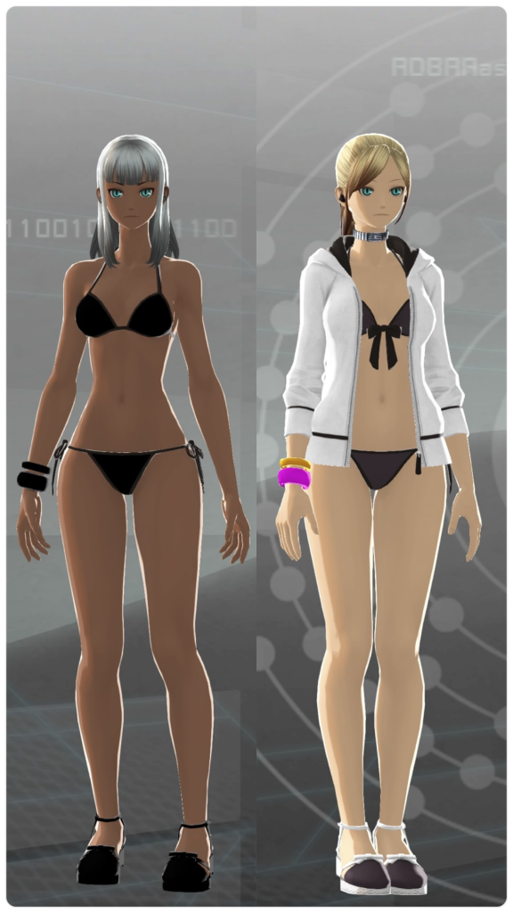 右側の水着スタイルは、刑期100万年を終えると入手できる衣装です。