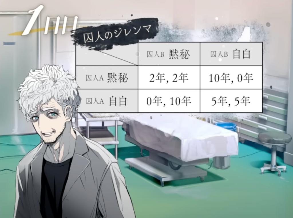 それぞれ自白するか黙秘するかを選択する権利を与えられました。・共に「黙秘」するなら両者とも懲役2年