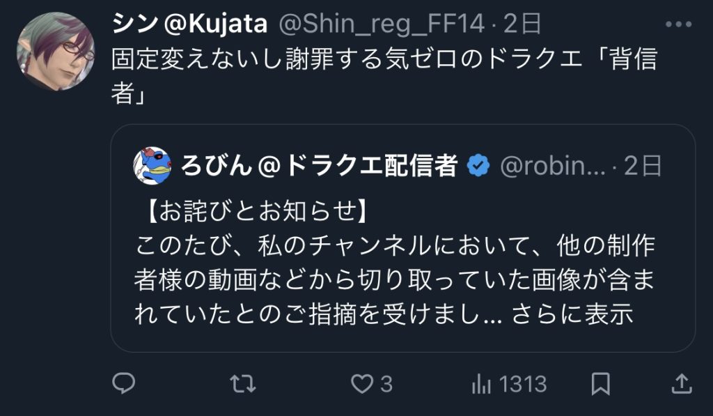 先日、ドラクエ実況者「ろびん」の炎上に関して