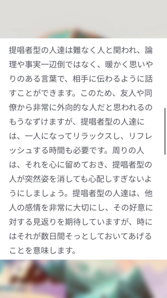 「提唱者」と呼ばれる性格だそうで、